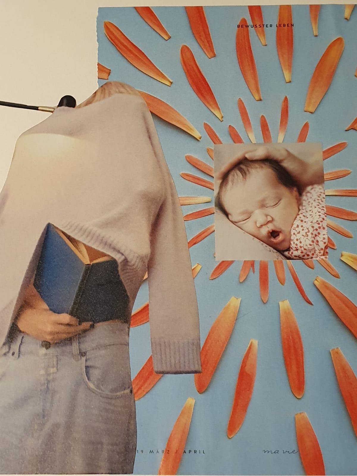 So sind all diese Papierschnipsel eine Zeit lang in meinem alten Lederkoffer, bis sie rausspringen, ausgeschnitten und arrangiert werden wollen, sei es zu Seelencollagen oder kleinen Kunstwerken.